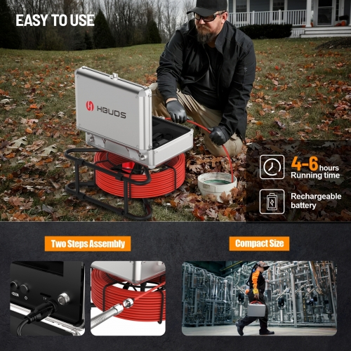 【PROFESSIONAL SEWER CAMERA】-Sewer laterals become unclean with time, resulting in congestion, clogging, and line damage. When these lines are compromised, your home faces property damage. Back-up waste can create flooding and spills. The resulting chaos can be hazardous to your health. HBUDS sewer inspection camera assists you in identifying potential problems in the system so that you can make repairs and avert additional damage. Perfect plumbing tools for professional plumbers and homeowners.