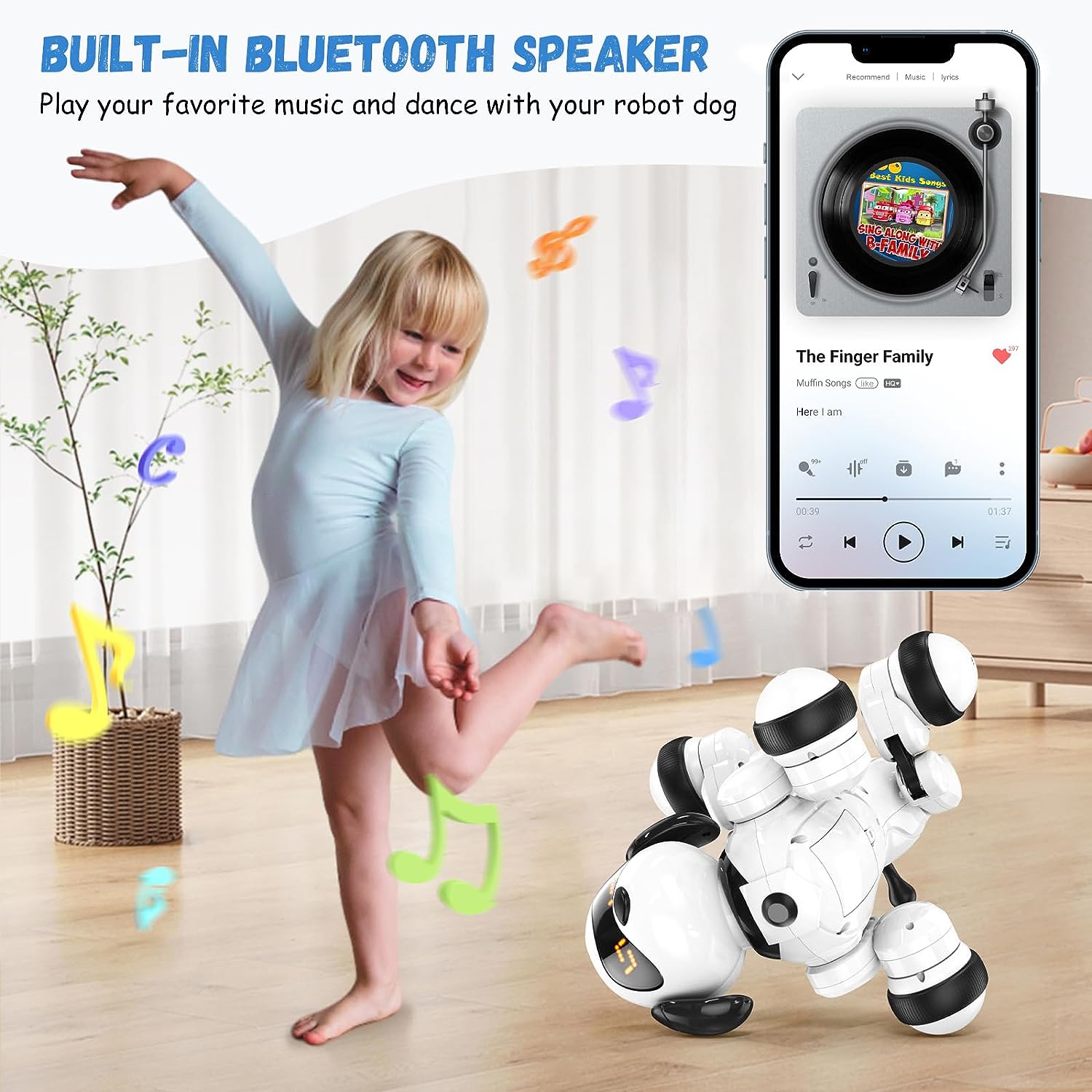 Robot Dog, Robot Dog Toy Rechargeable, Interactive Programmable Robot Pet for Kids, Voice Commands, App, Remote Control, Robo Dog with Bluetooth Speaker, for Boys Girls Kids