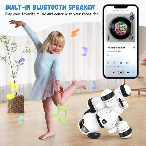 Built-in Bluetooth Speaker - Not only does it respond to various commands, but it also doubles as a wireless speaker.Experience the joy of playing with your smart pet robot while immersing yourself in a world of music. Add an extra layer of fun and excitement to your life as you create memorable moments filled with laughter and a soundtrack that sets the perfect mood. ( Note: While using Bluetooth as a speaker, please be aware that issuing a command to the dog will interrupt the playing music.)