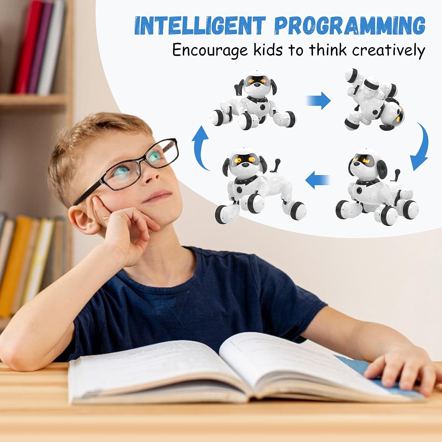 The Perfect Gift for Kids - Our programmable interactive remote control dog is a meaningful and exceptional choice for boys and girls. Whether it's for Christmas, birthdays, or any special occasion, this toy brings joy and excitement. With a built-in rechargeable battery and included USB cable, it's not only convenient but also saves you money on batteries. Give the gift of endless fun, learning, and happy memories with our remarkable programmable robot dog toy.