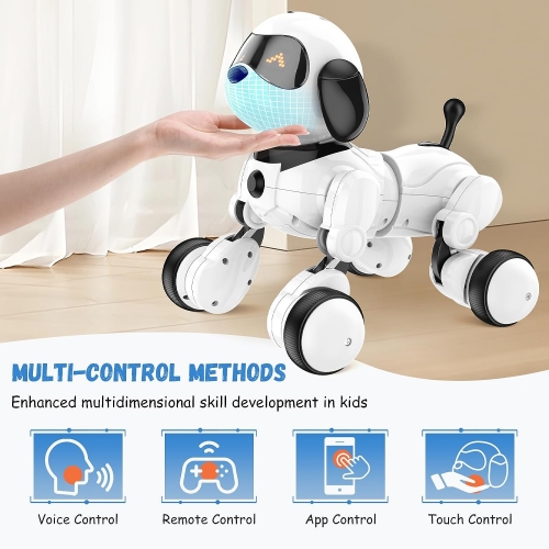 Lifelike and Interactive Playmate - Our robot dog toy goes beyond being just a toy—it's the perfect interactive playmate for children. Effortlessly controlled via remote, mobile app, tuch, or voice commands. With its versatile nature, this robot dog toy becomes a true friend, fulfilling children's whims and fancies. It's not just a playmate, but a partner in education and entertainment, helping your kids build a rich and colorful childhood filled with joyful learning and endless fun.